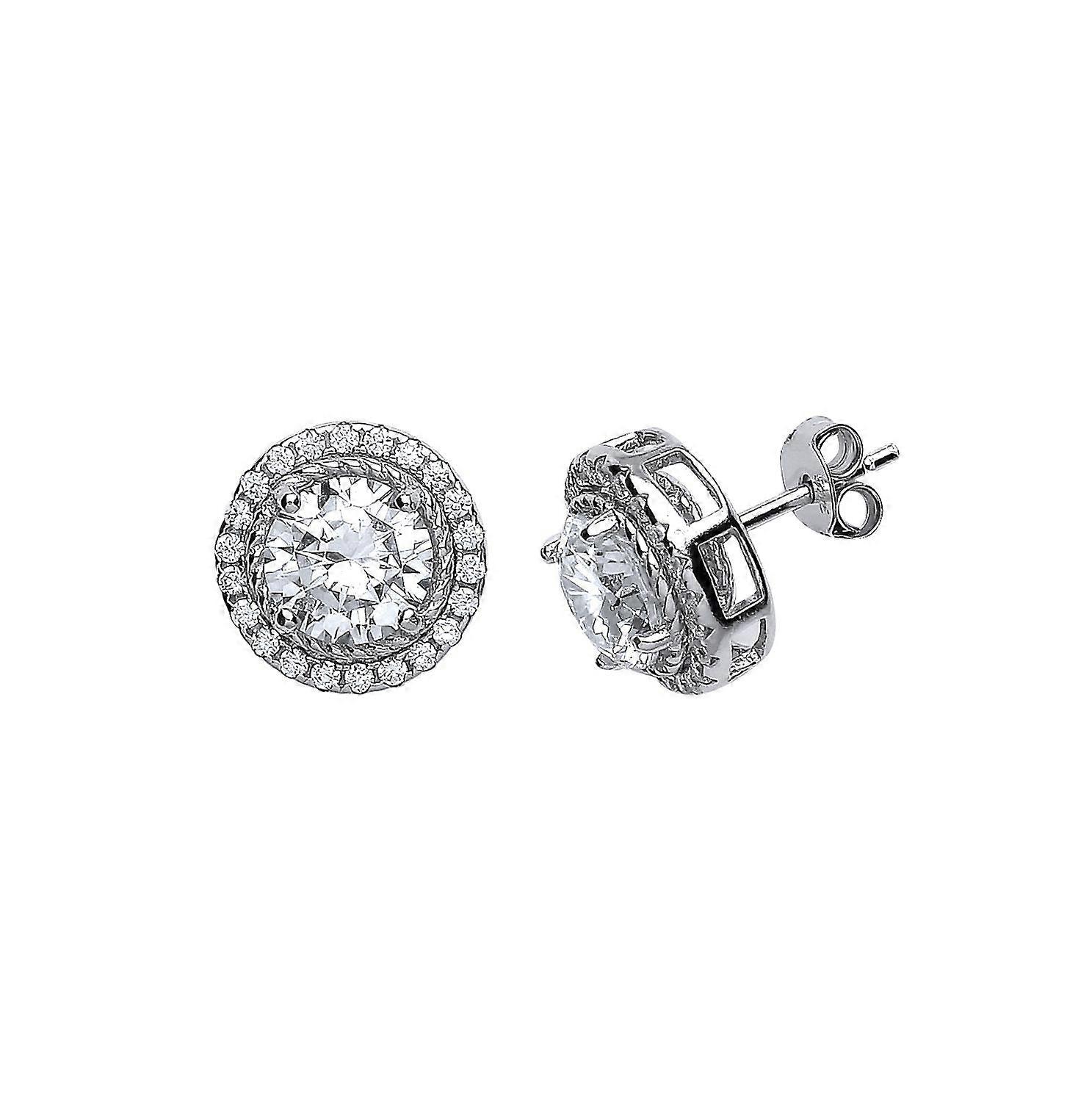 Jewelco London Ladies Sterling Silver Cubic Zirconia Halo Stud Earrings