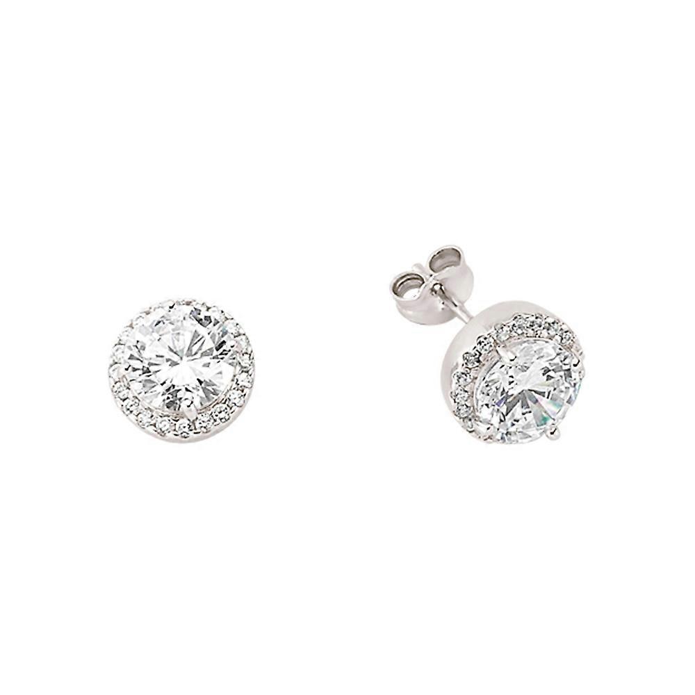 Jewelco London Ladies Sterling Silver Cubic Zirconia Halo Stud Earrings