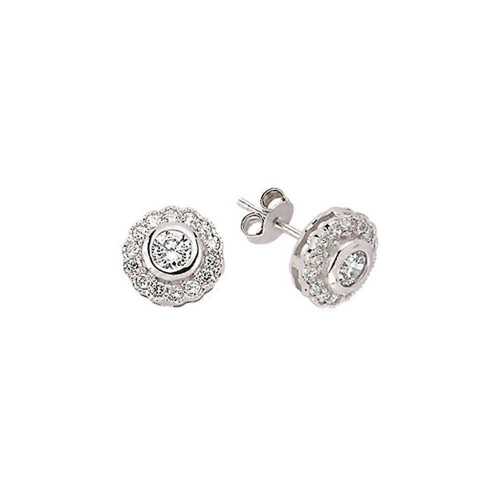 Jewelco London Ladies Sterling Silver Cubic Zirconia Halo Stud Earrings