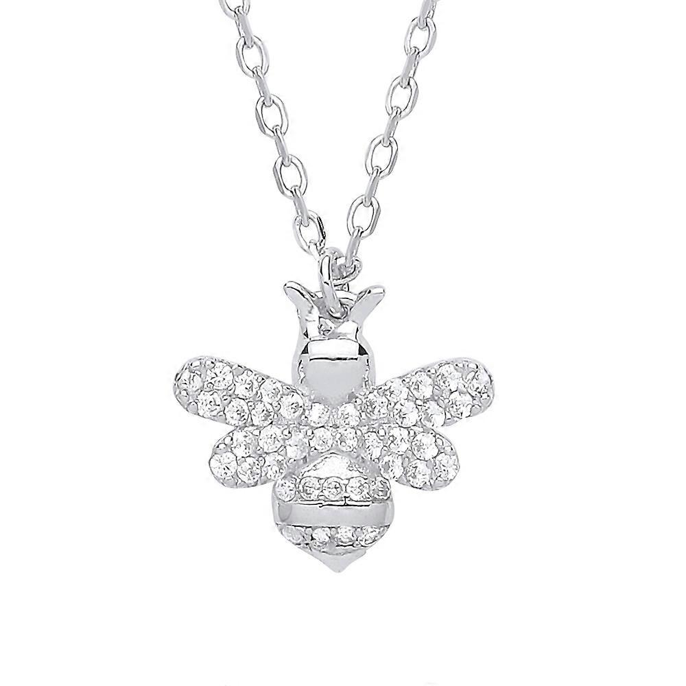 Jewelco London Ladies Sterling Silver Cubic Zirconia Honey Queen Bee Charm Necklace 16 inch