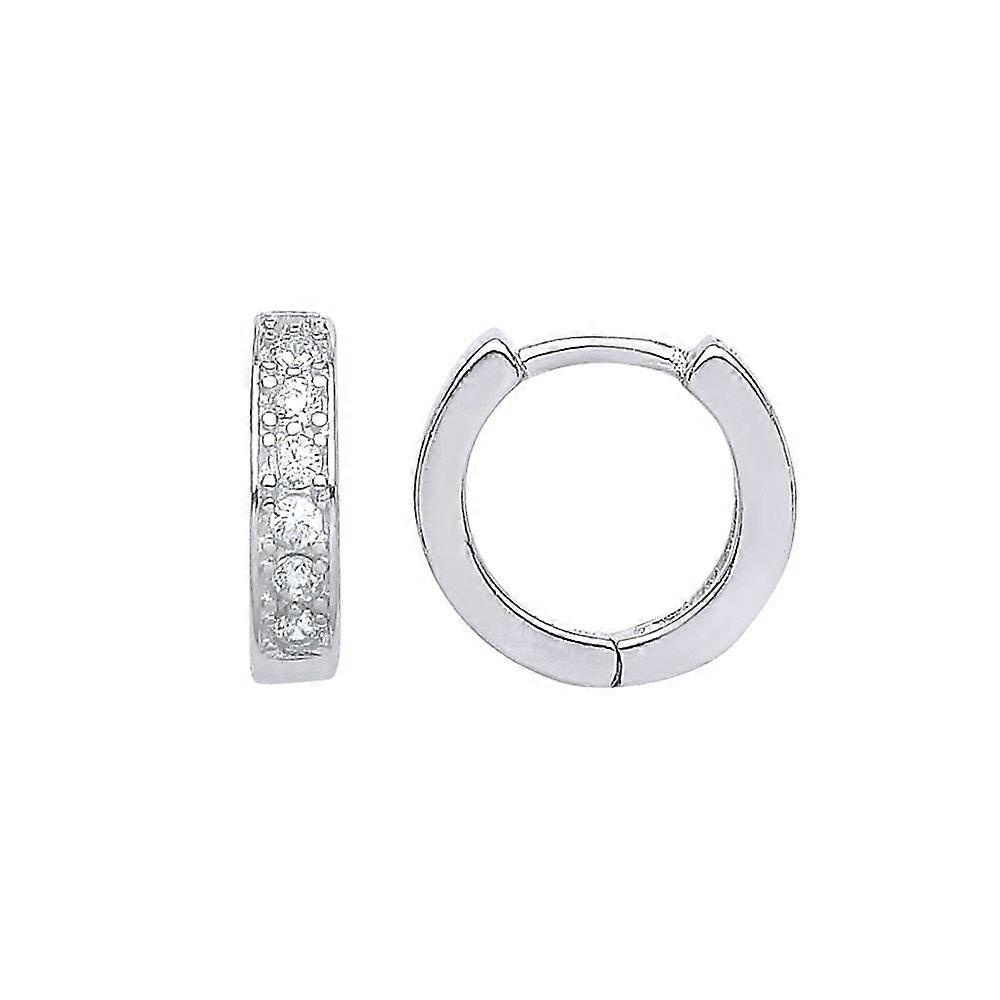 Jewelco London Ladies Sterling Silver Cubic Zirconia Huggie Hoop Earrings 10mm