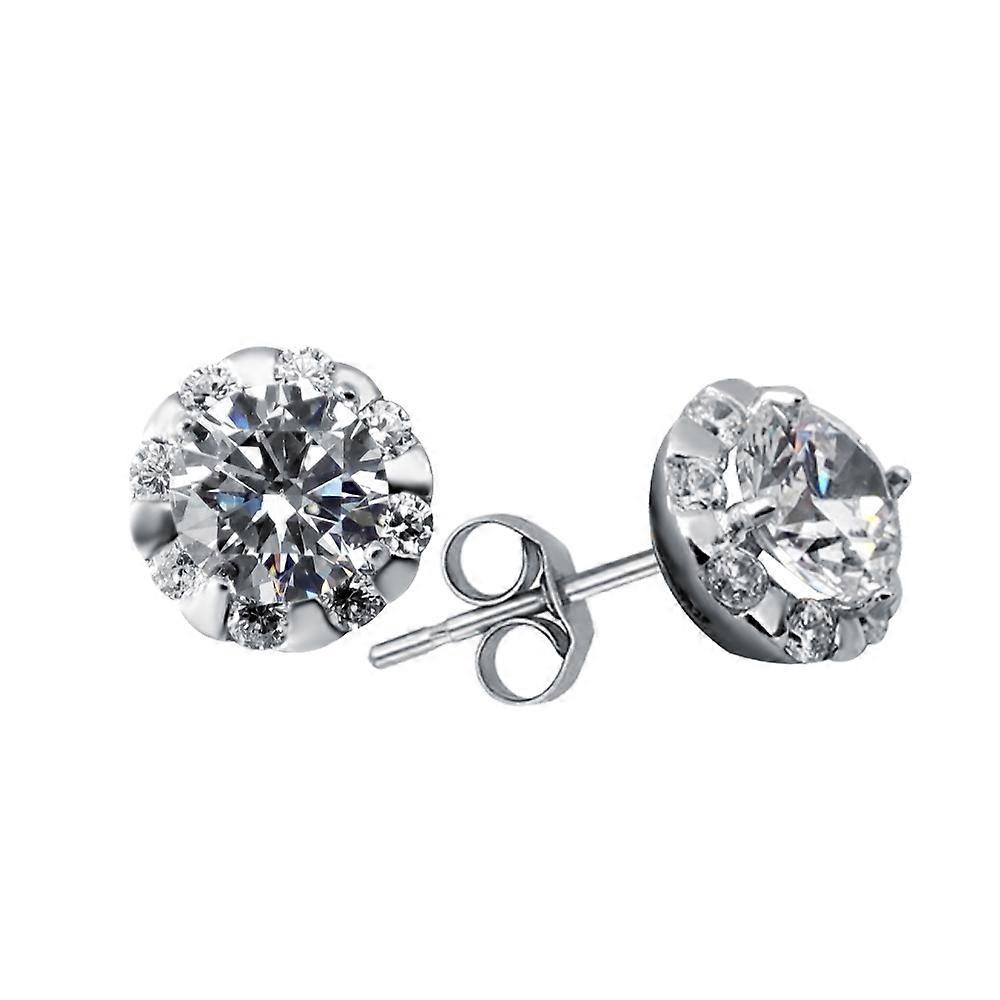 Jewelco London Ladies Sterling Silver Cubic Zirconia Illusion Halo Stud Earrings