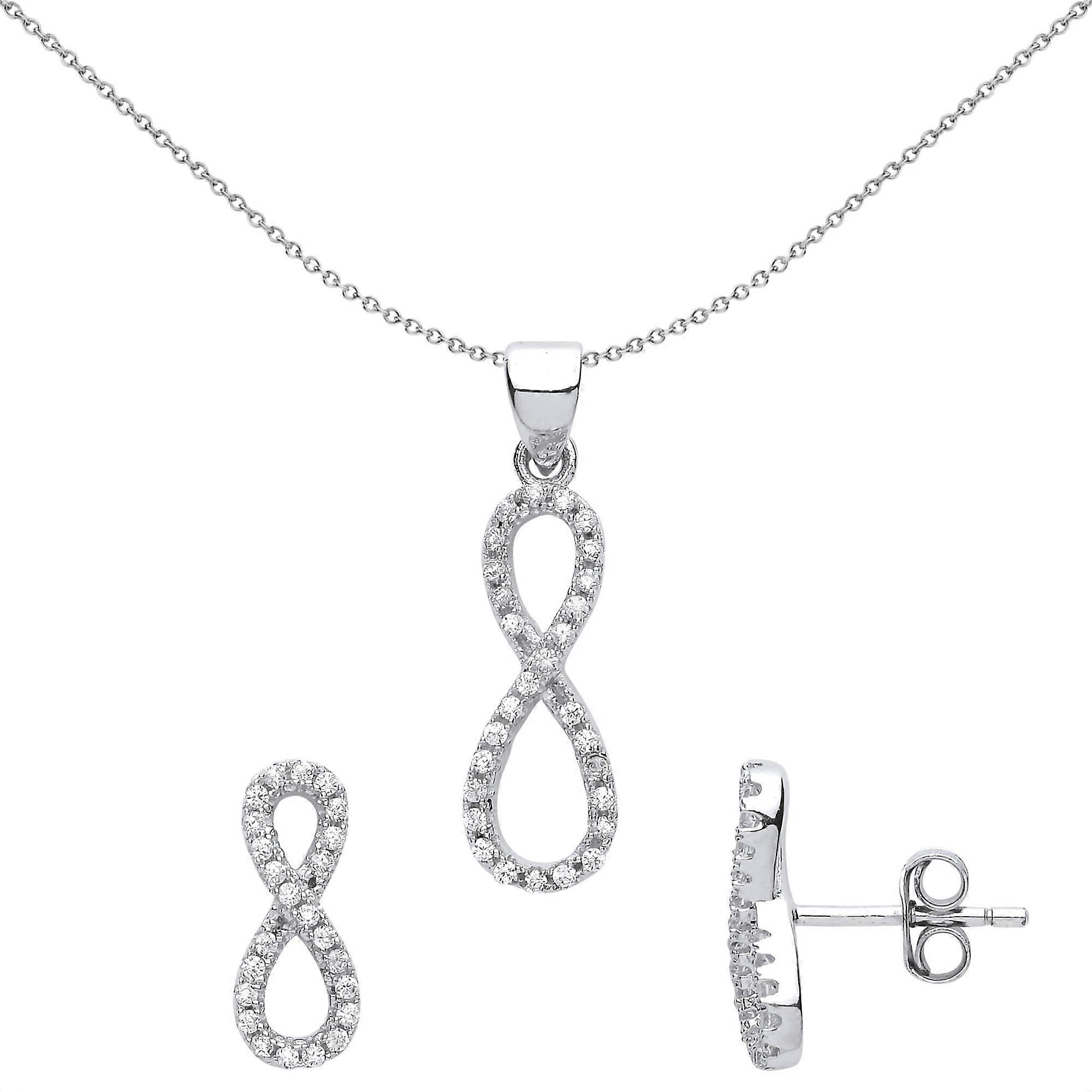 Jewelco London Ladies Sterling Silver Cubic Zirconia Infinity Earrings Necklace Set