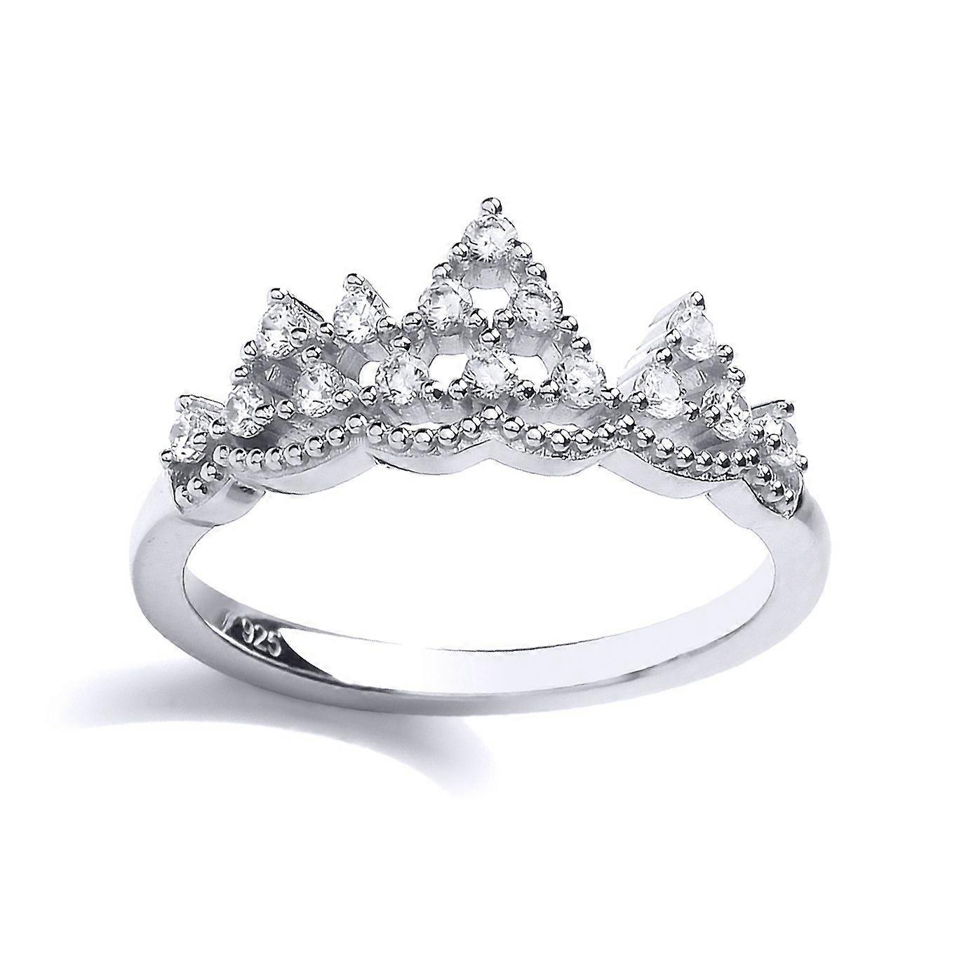 Jewelco London Ladies Sterling Silver Cubic Zirconia Mountain King Crown Dress Ring