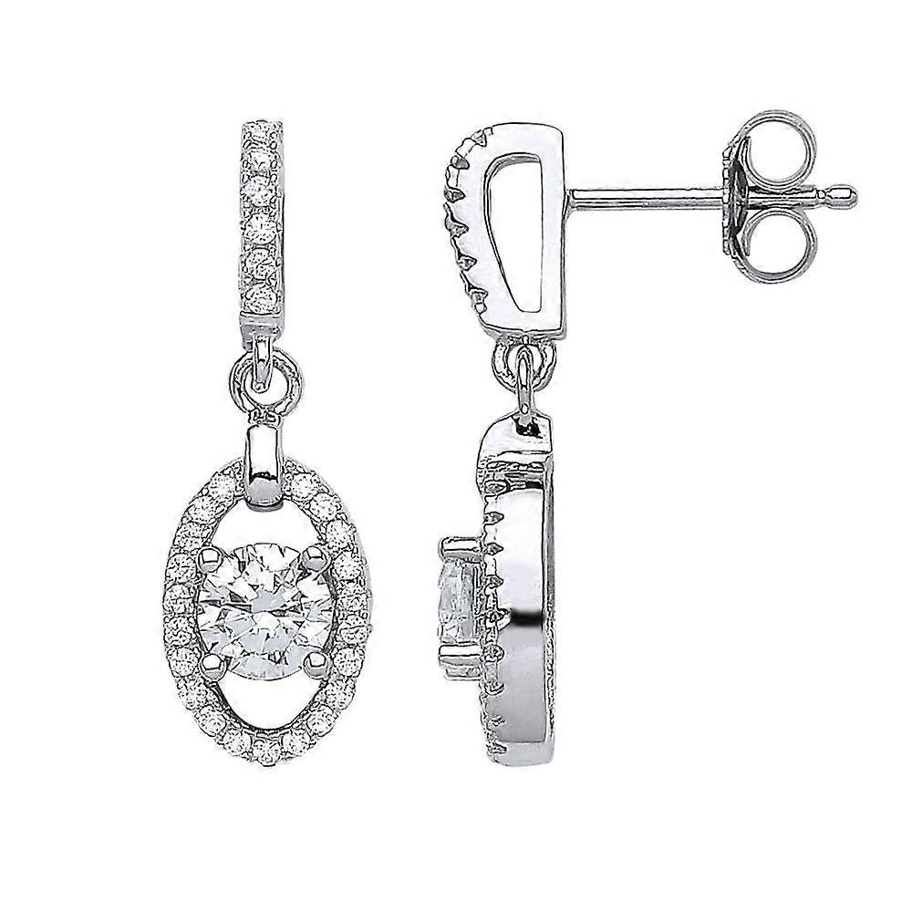 Jewelco London Ladies Sterling Silver Cubic Zirconia Oval Halo Stud Earrings
