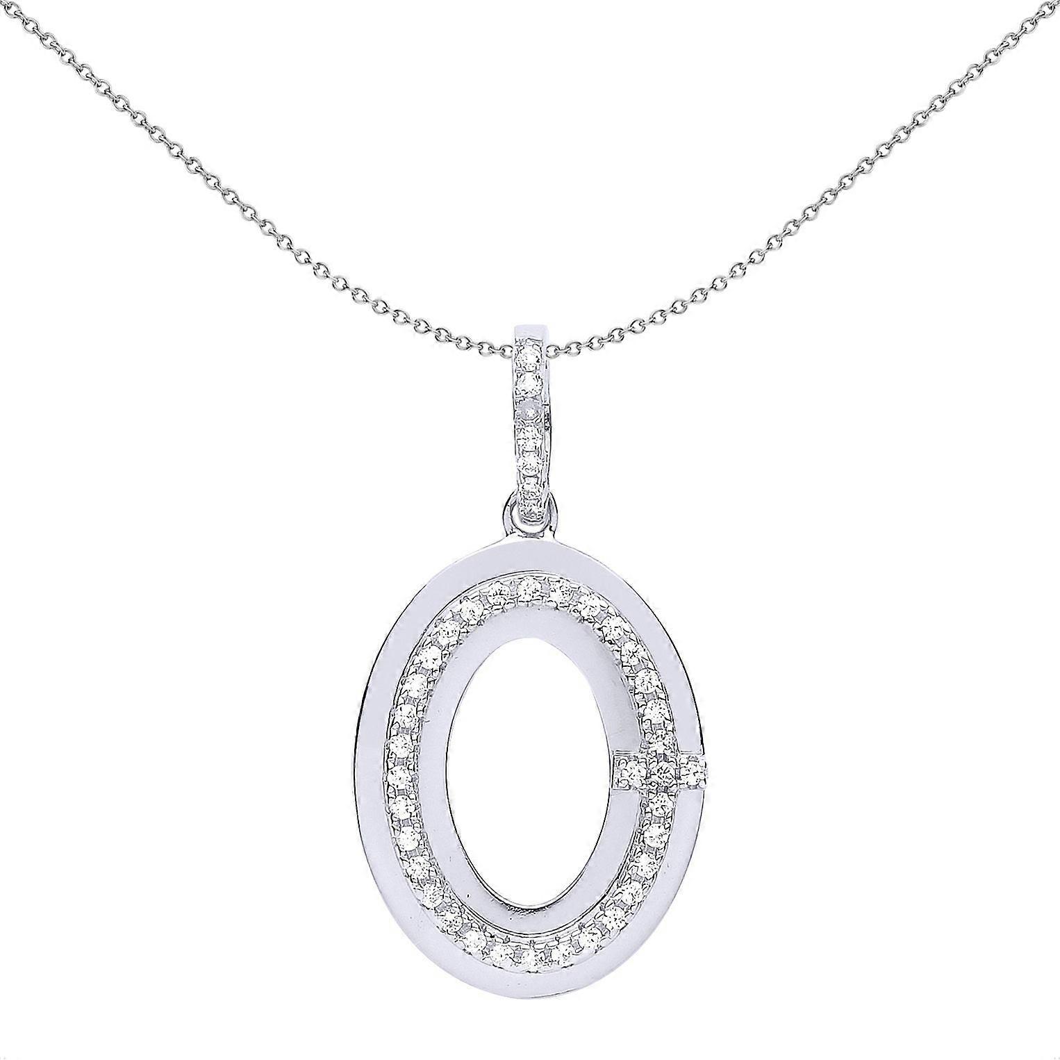 Jewelco London Ladies Sterling Silver Cubic Zirconia Oval O Halo Pendant Necklace 18 inch