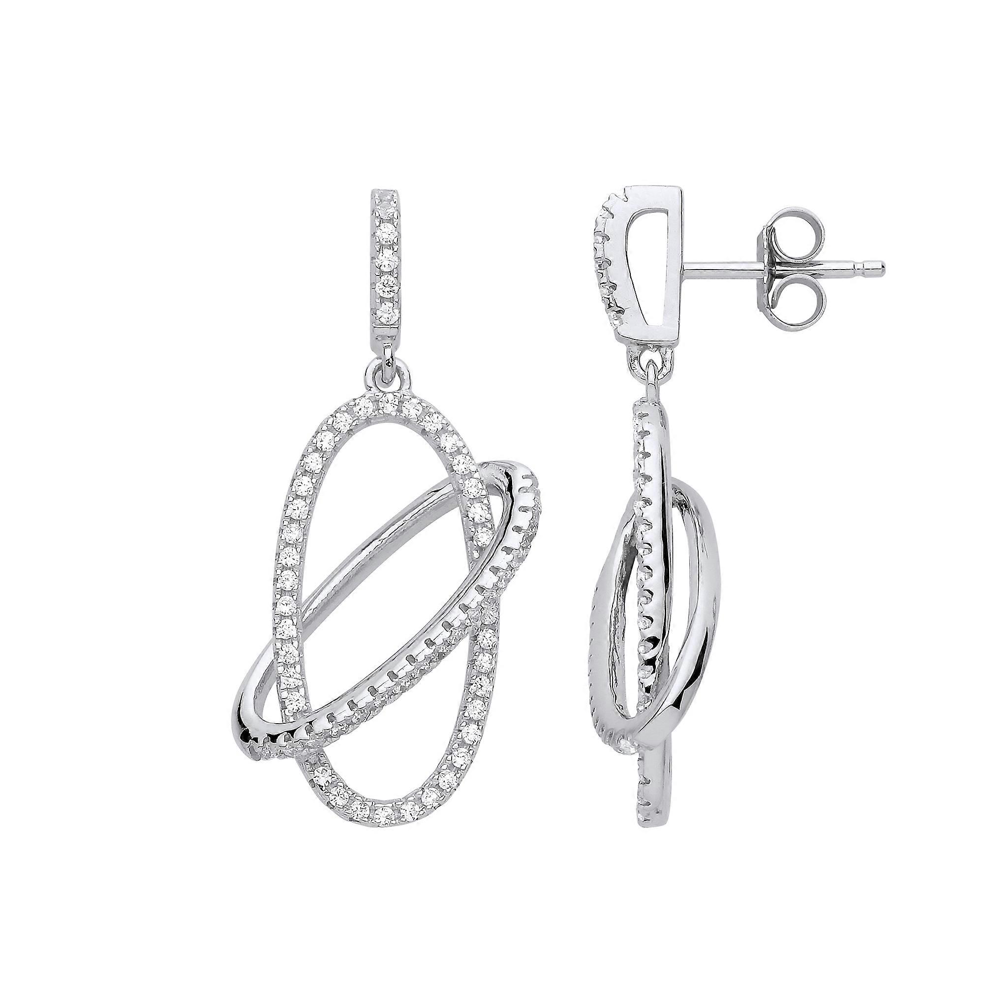 Jewelco London Ladies Sterling Silver Cubic Zirconia Oval Orbit Halo Stud Drop Earrings