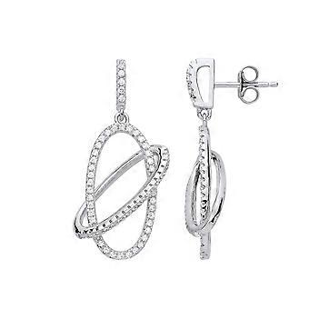 Jewelco London Ladies Sterling Silver Cubic Zirconia Oval Orbit Halo Stud Drop Earrings