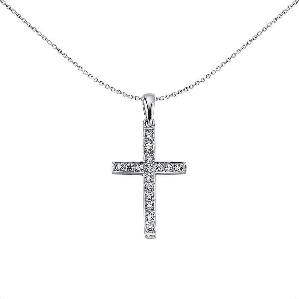 Jewelco London Ladies Sterling Silver Cubic Zirconia Pave Cross Pendant Necklace 18 inch
