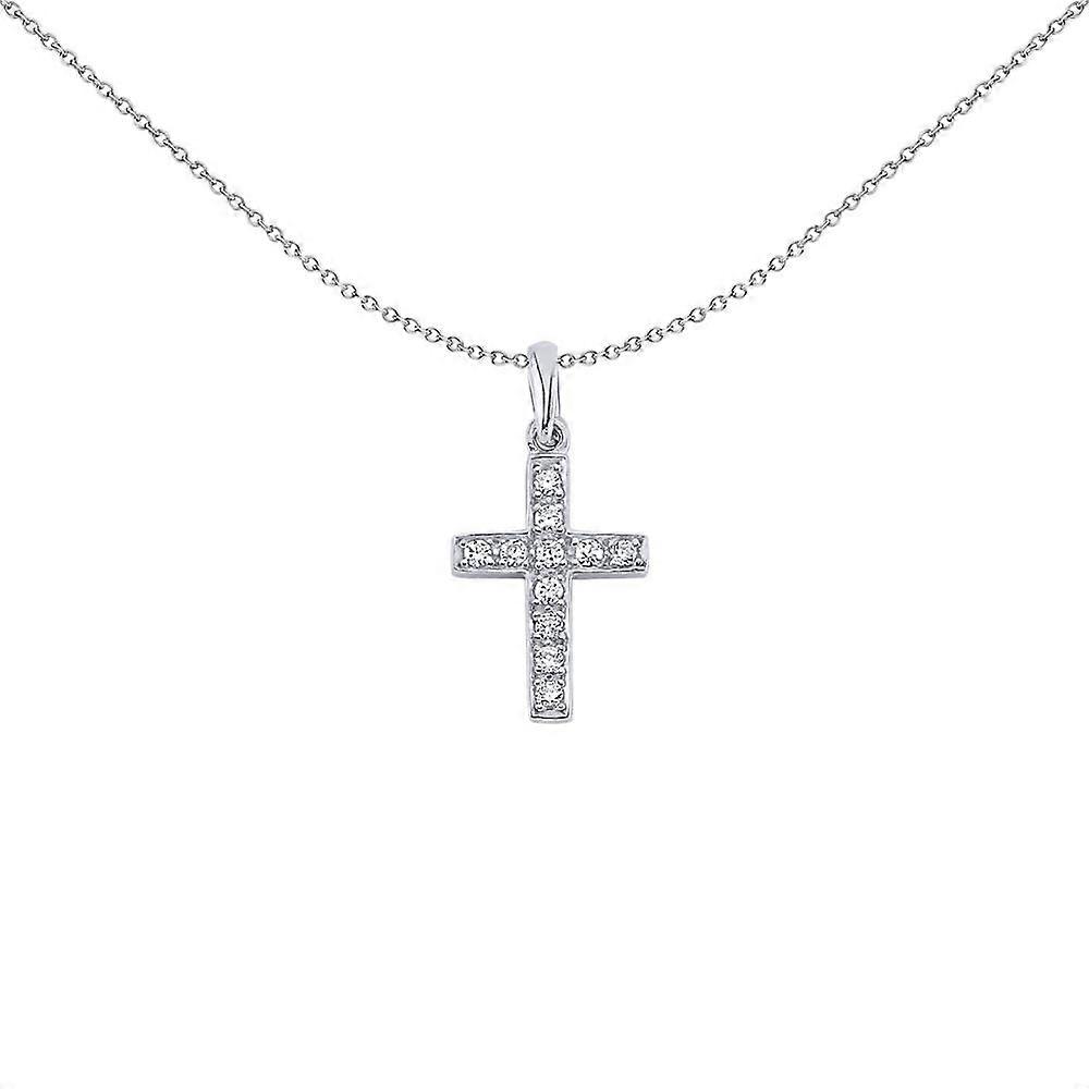Jewelco London Ladies Sterling Silver Cubic Zirconia Pave Cross Pendant Necklace 18 inch