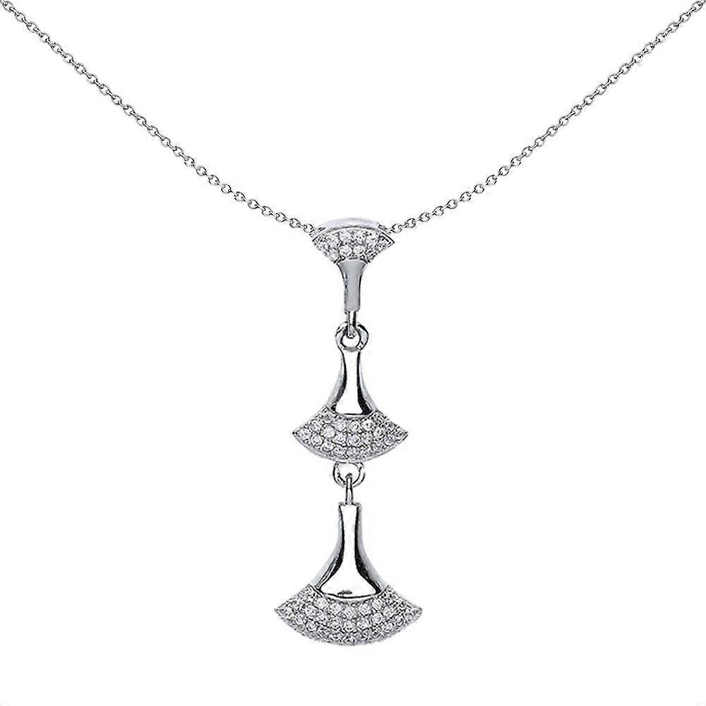 Jewelco London Ladies Sterling Silver Cubic Zirconia Pave Fans Drop Charm Necklace 18 inch