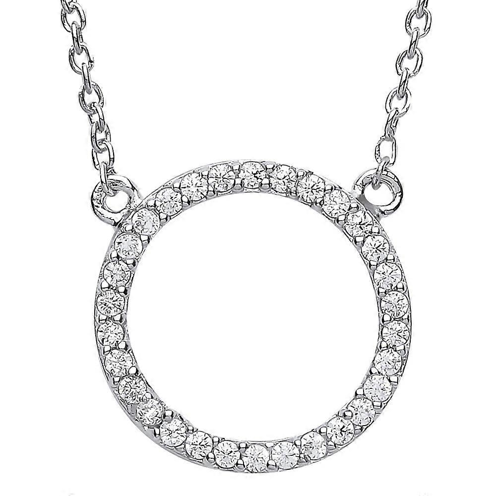 Jewelco London Ladies Sterling Silver Cubic Zirconia Pave Halo Charm Necklace 16 + 2 inch