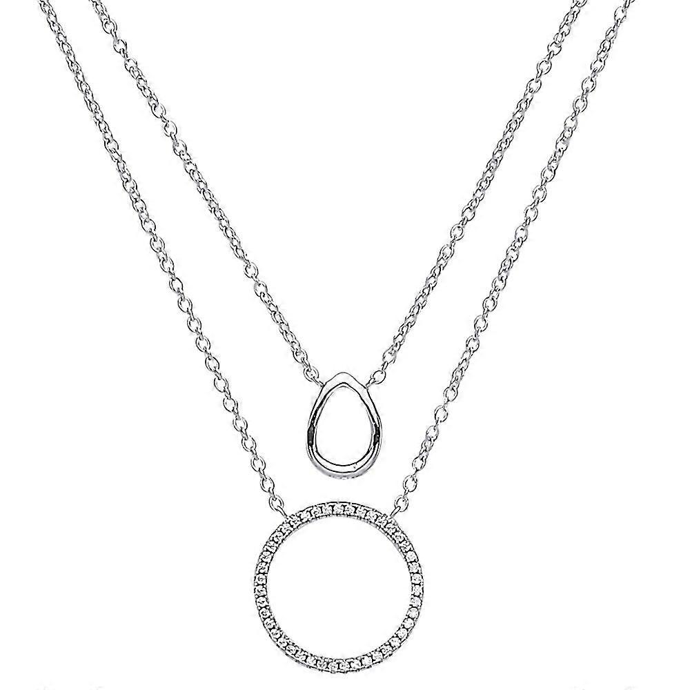 Jewelco London Ladies Sterling Silver Cubic Zirconia Pave Halo Charm Necklace 17 inch