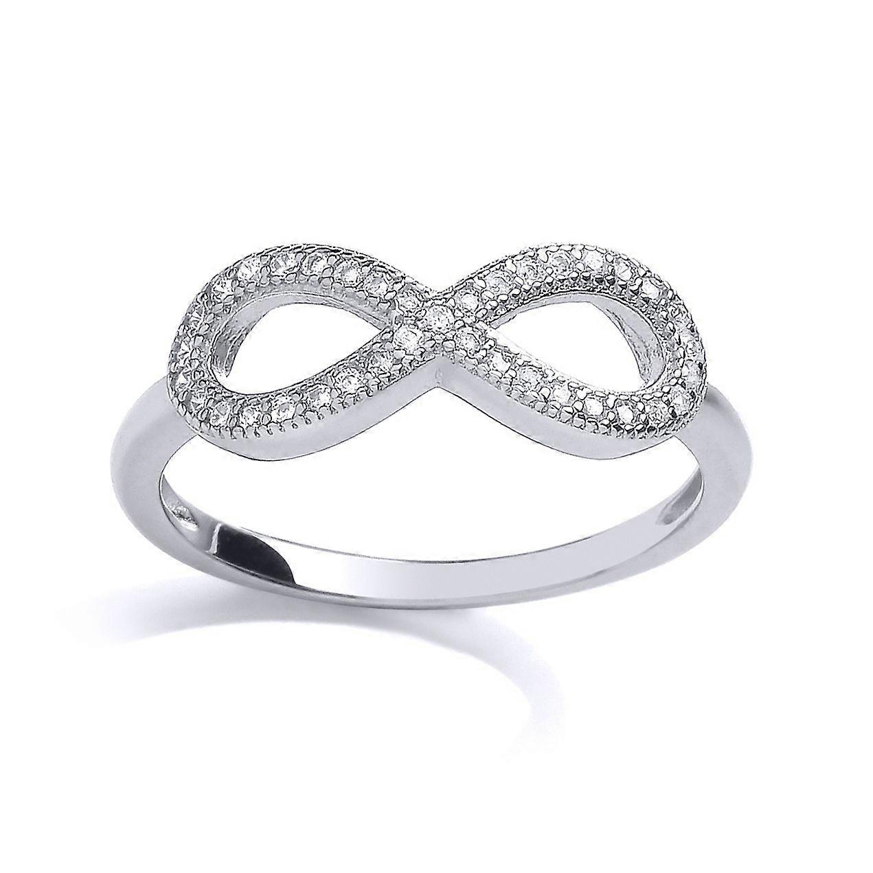 Jewelco London Ladies Sterling Silver Cubic Zirconia Pave Infinity Emblem Dress Ring
