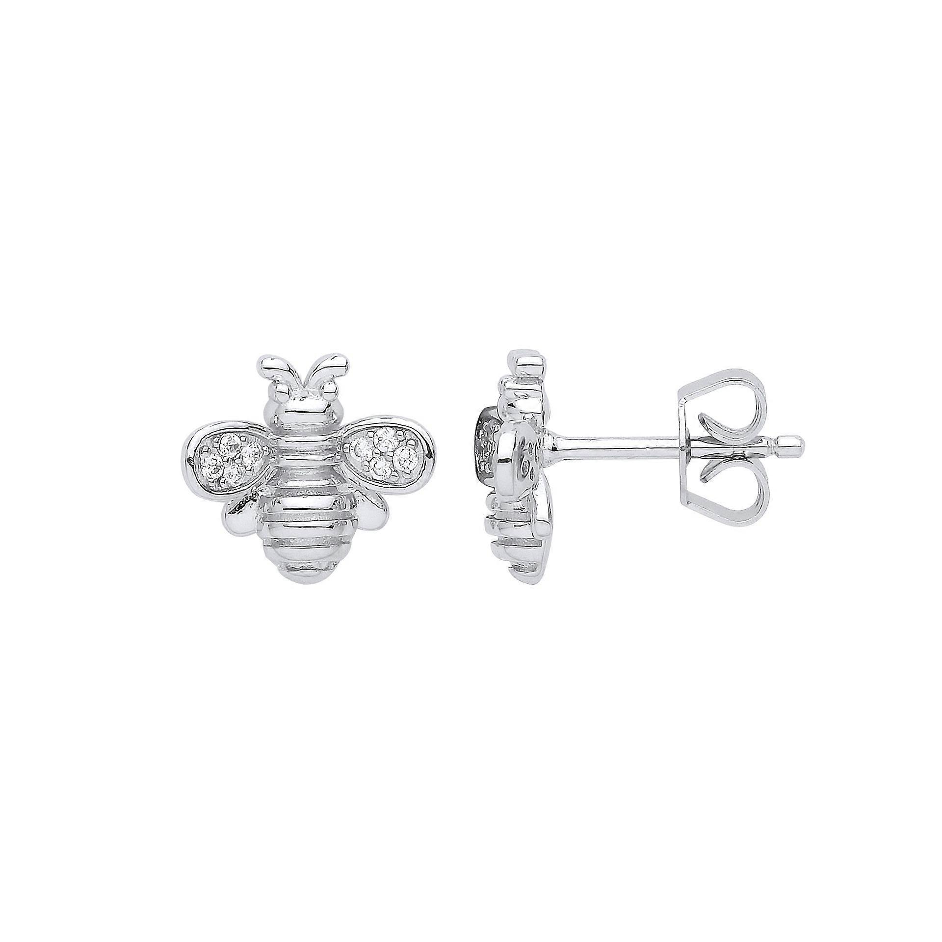 Jewelco London Ladies Sterling Silver Cubic Zirconia Queen Bumble Honey Bee Stud Earrings