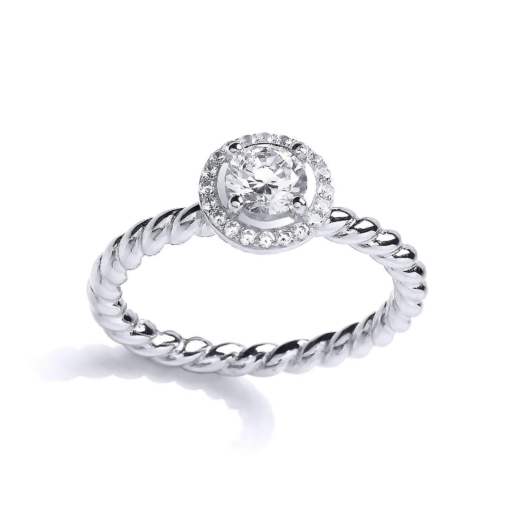 Jewelco London Ladies Sterling Silver Cubic zirconia Rope Twist Halo Solitaire Engagement Ring