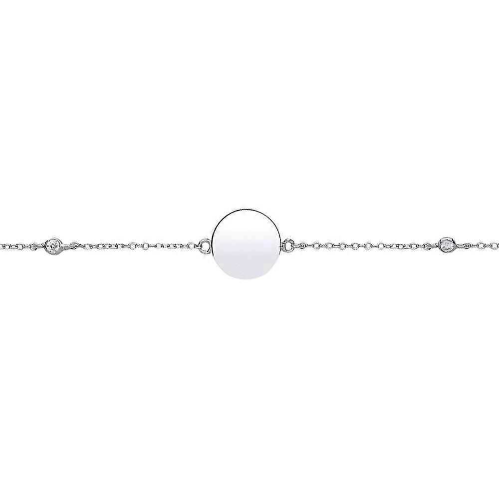 Jewelco London Ladies Sterling Silver Cubic zirconia Round Disc Tag Infinity Bracelet 15mm