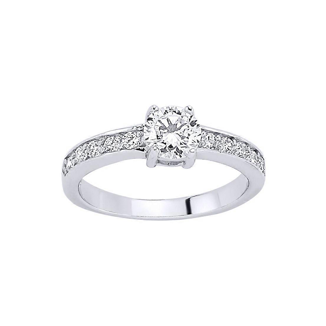 Jewelco London Ladies Sterling Silver Cubic Zirconia Shoulder-Set 4 Claw Solitaire Engagement Ring