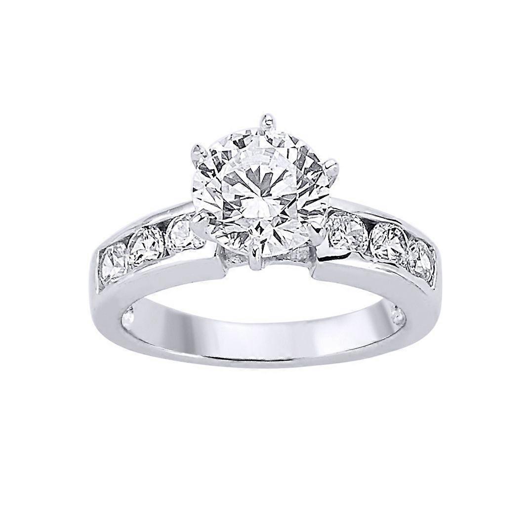 Jewelco London Ladies Sterling Silver Cubic Zirconia Shoulder-Set Halo Solitaire Engagement Ring