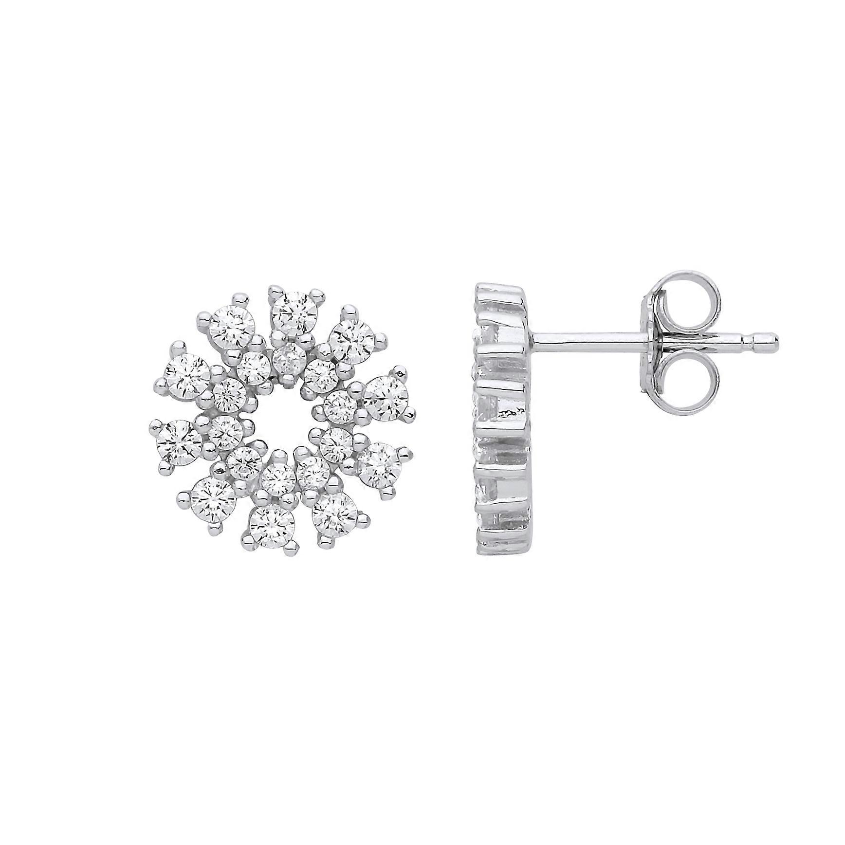 Jewelco London Ladies Sterling Silver Cubic Zirconia Snowflake Cluster Stud Drop Earrings