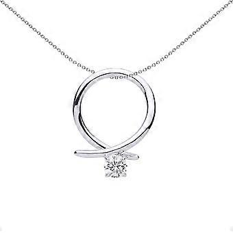 Jewelco London Ladies Sterling Silver Cubic Zirconia Solitaire Crossover Pendant Necklace 18 inch