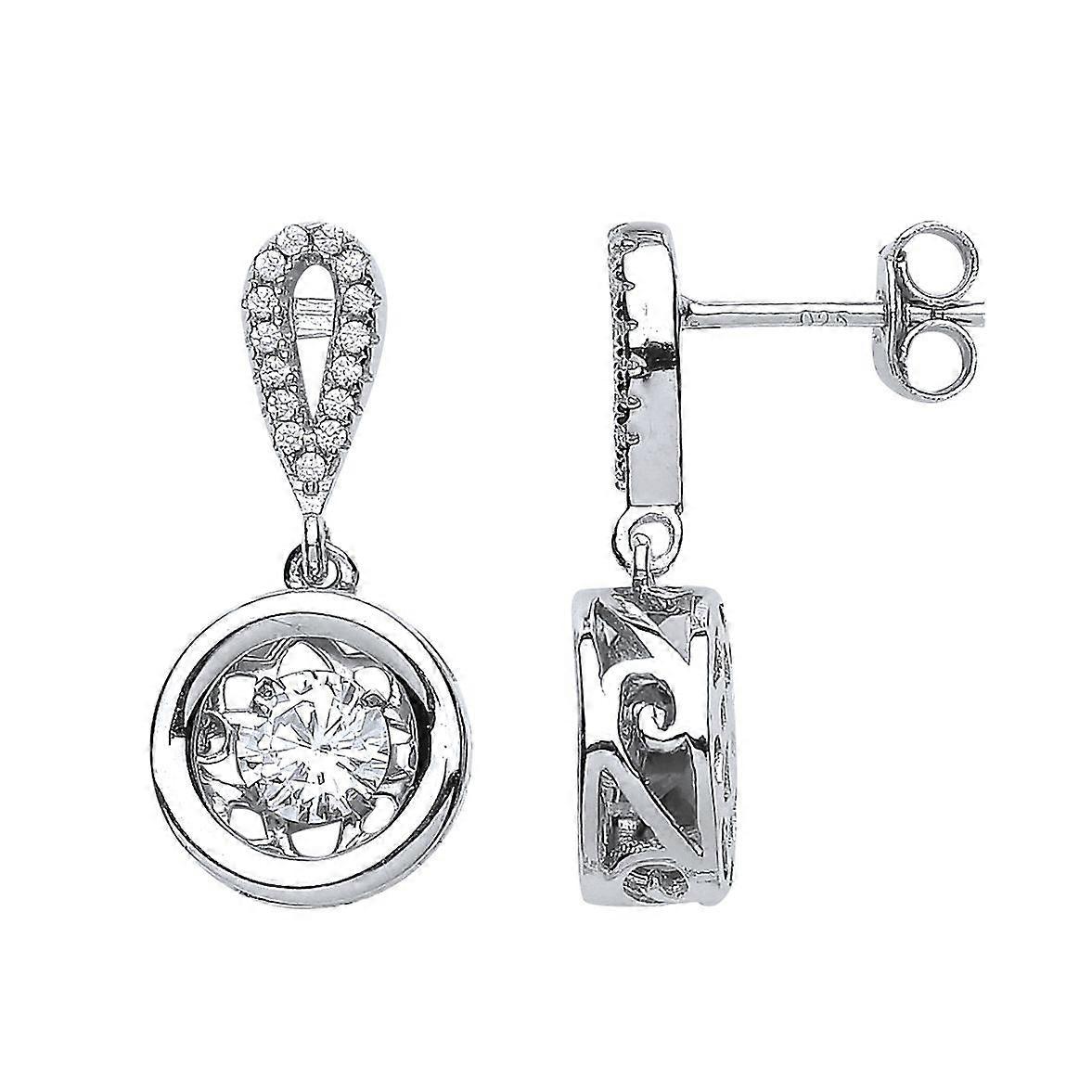 Jewelco London Ladies Sterling Silver Cubic Zirconia Solitaire Drop Earrings