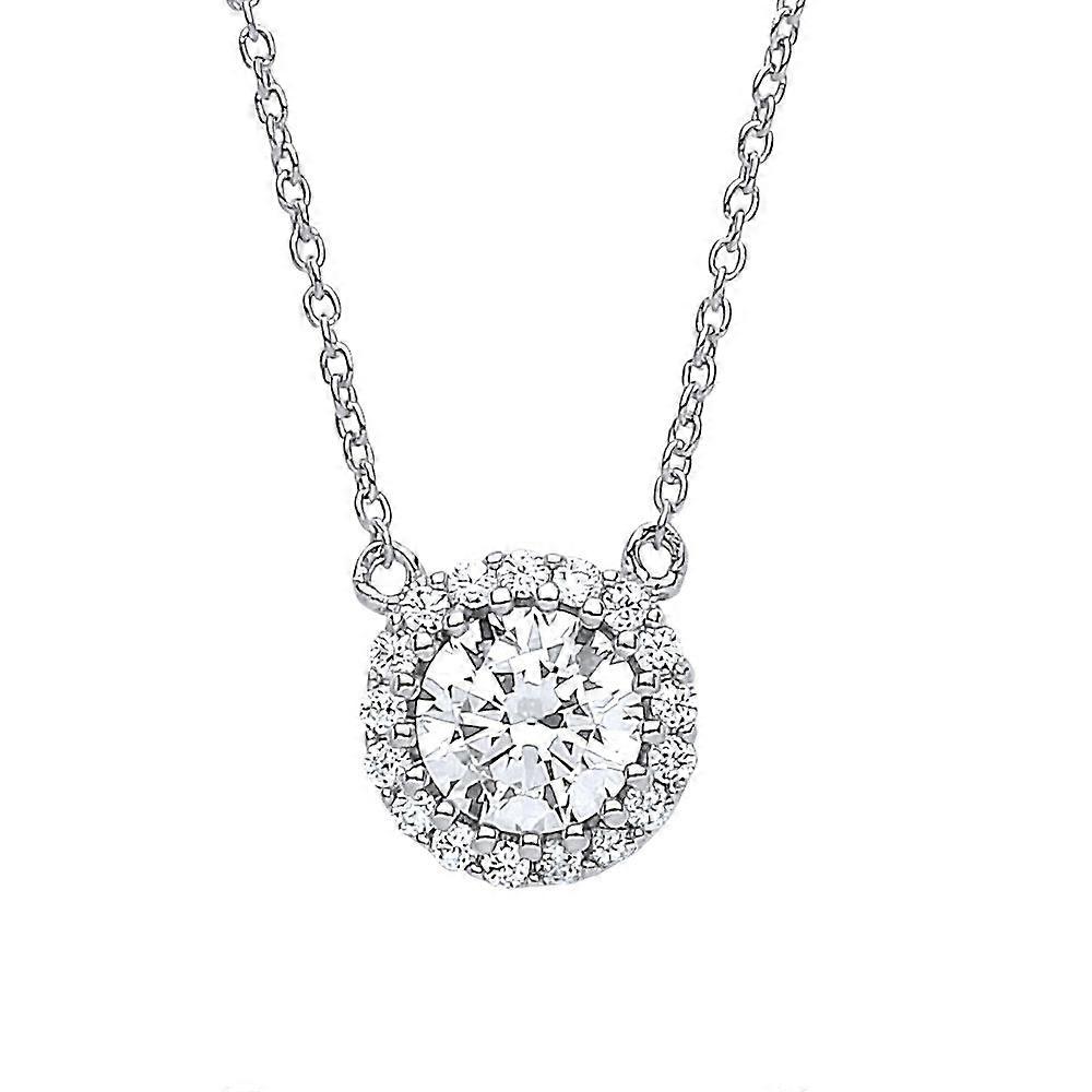 Jewelco London Ladies Sterling Silver Cubic Zirconia Solitaire Halo Charm Necklace 16 + 2 inch