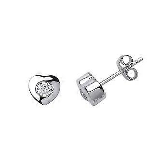 Jewelco London Ladies Sterling Silver Cubic Zirconia Solitaire Heart Stud Earrings