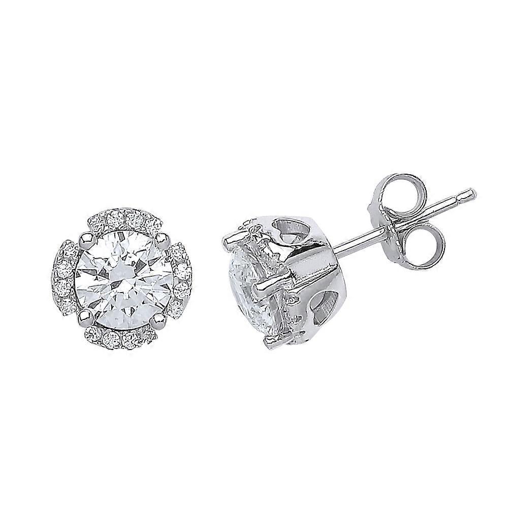 Jewelco London Ladies Sterling Silver Cubic Zirconia Split Halo Stud Earrings