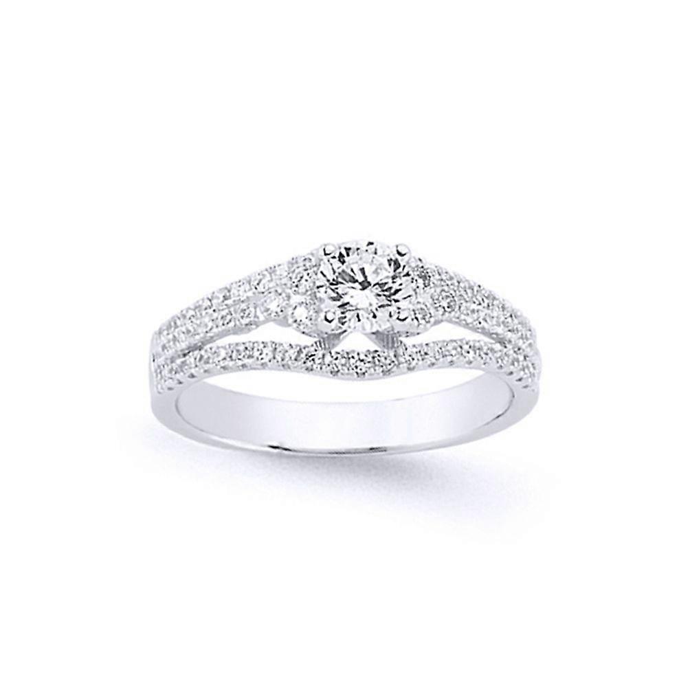 Jewelco London Ladies Sterling Silver Cubic Zirconia Split Shoulder-Set Solitaire Engagement Ring