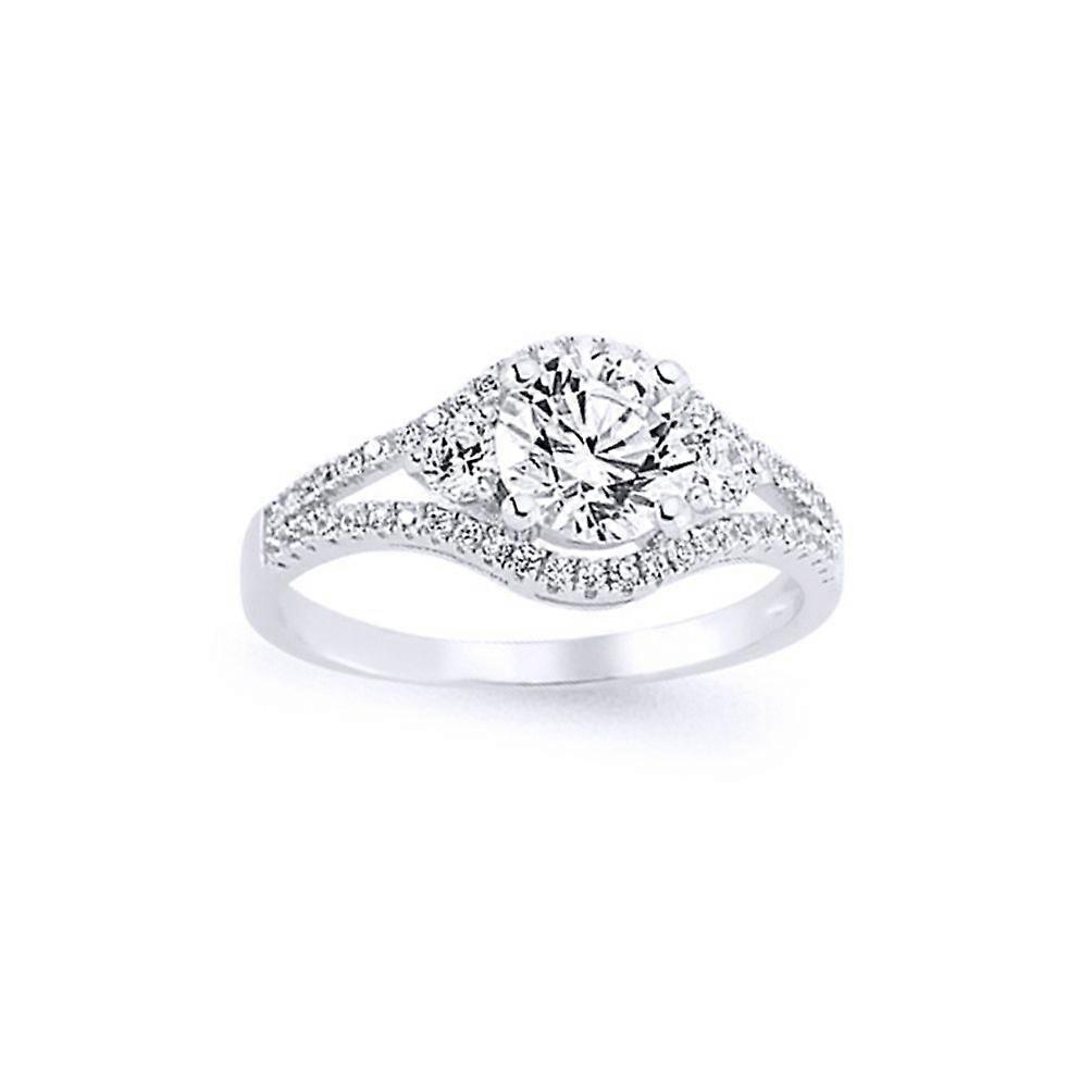 Jewelco London Ladies Sterling Silver Cubic Zirconia Split Shoulder-Set Solitaire Engagement Ring