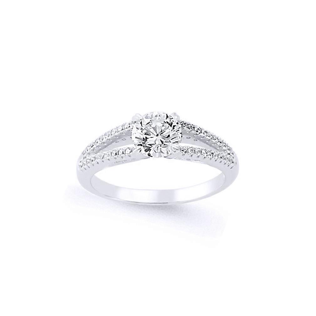 Jewelco London Ladies Sterling Silver Cubic Zirconia Split Shoulder-Set Solitaire Engagement Ring