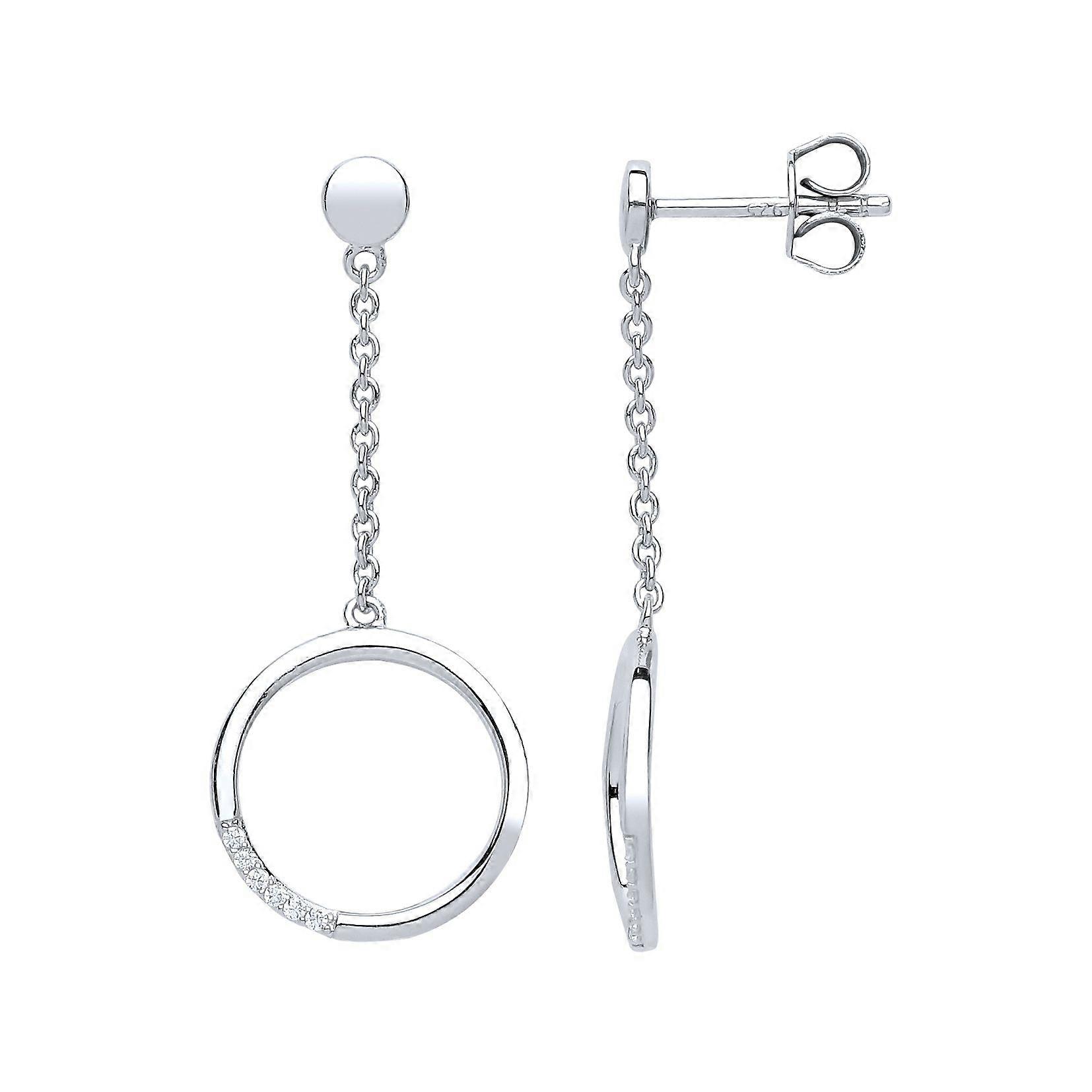 Jewelco London Ladies Sterling Silver Cubic zirconia Swing Hoop Pendulum Drop Earrings