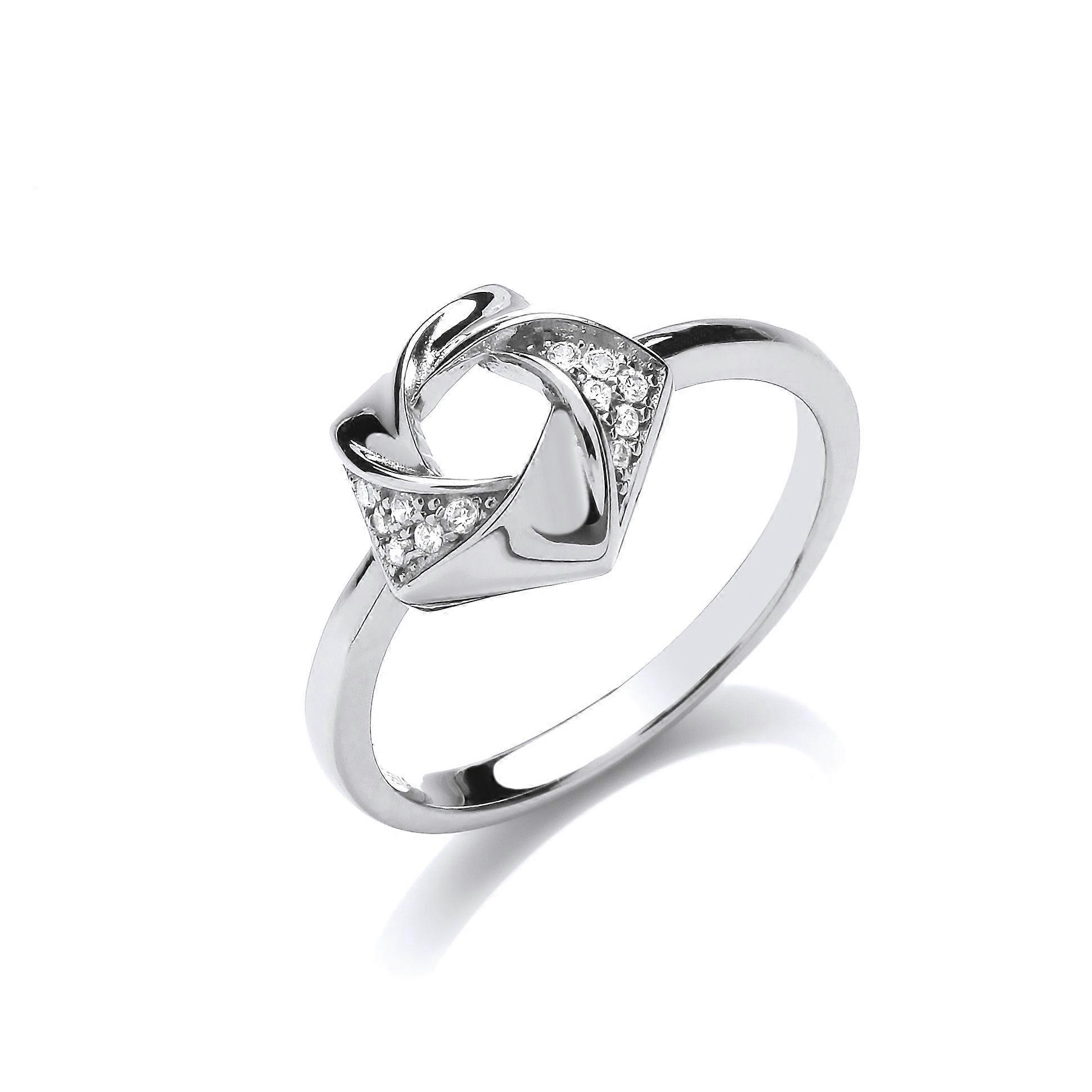 Jewelco London Ladies Sterling Silver Cubic Zirconia Swirling Pentagon Flower Dress Ring