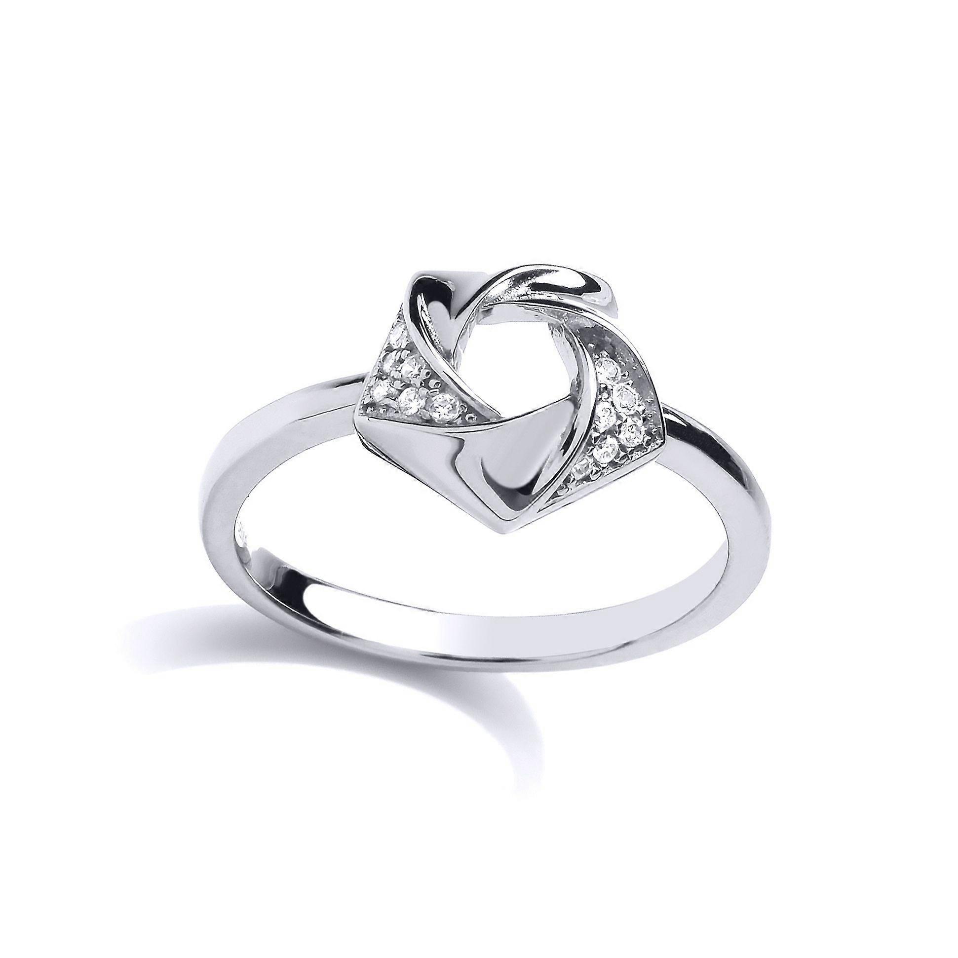 Jewelco London Ladies Sterling Silver Cubic Zirconia Swirling Pentagon Flower Dress Ring