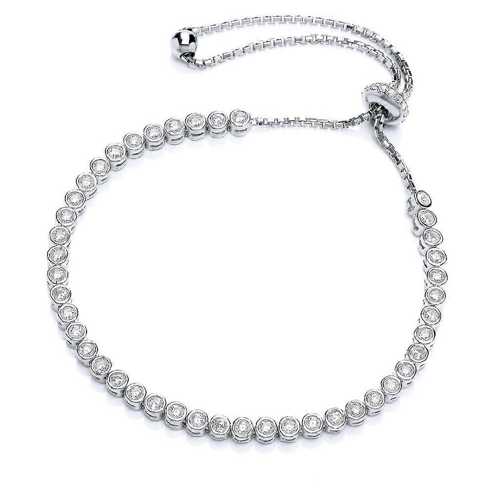 Jewelco London Ladies Sterling Silver Cubic Zirconia Tennis Eternity Toggle Slider Bracelet 3mm