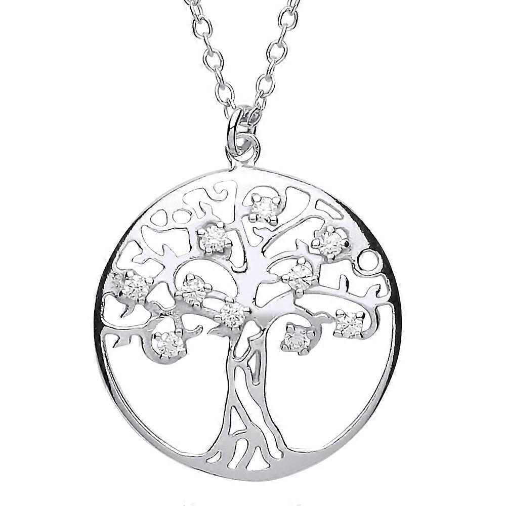Jewelco London Ladies Sterling Silver Cubic zirconia Tree of Life Charm Necklace 16 inch