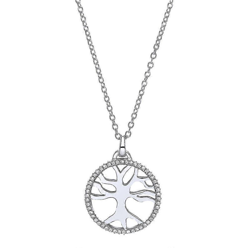 Jewelco London Ladies Sterling Silver Cubic zirconia Tree of Life Pendant Necklace 17 inch