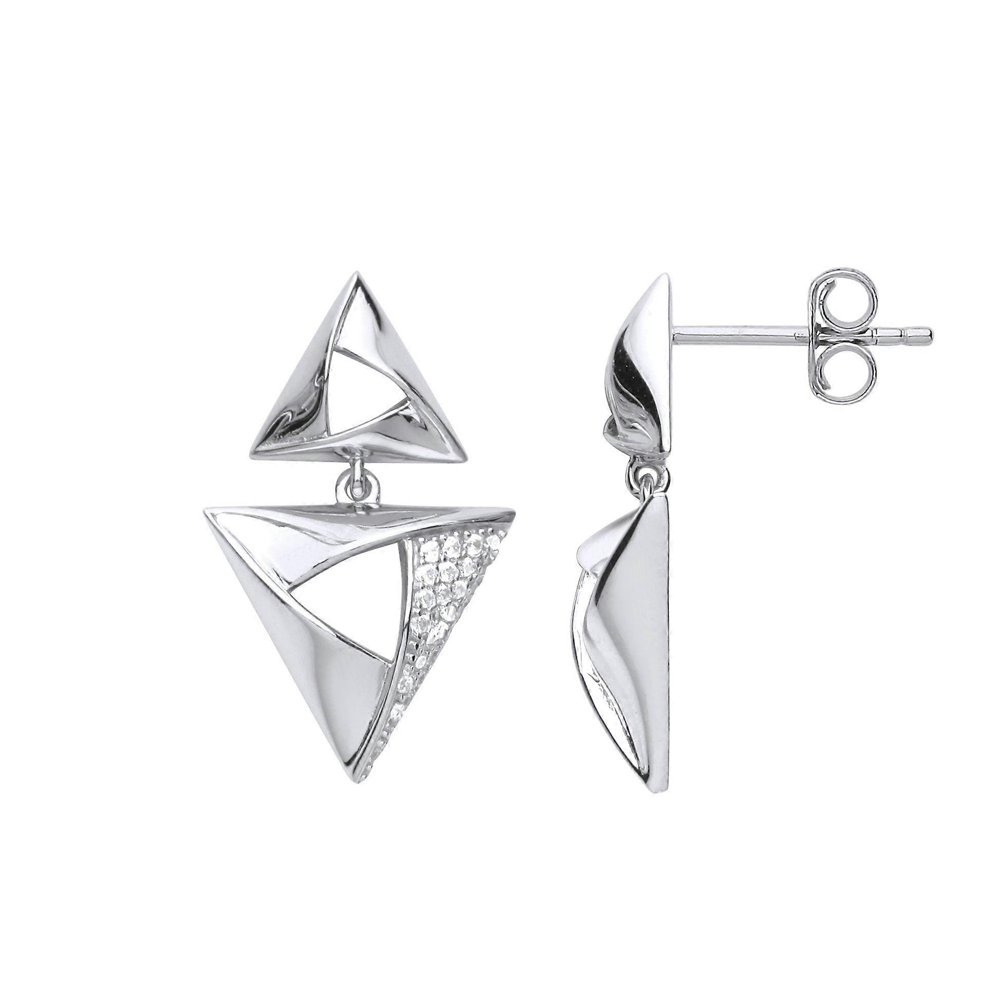 Jewelco London Ladies Sterling Silver Cubic Zirconia Triangle Hamantaschen Drop Earrings