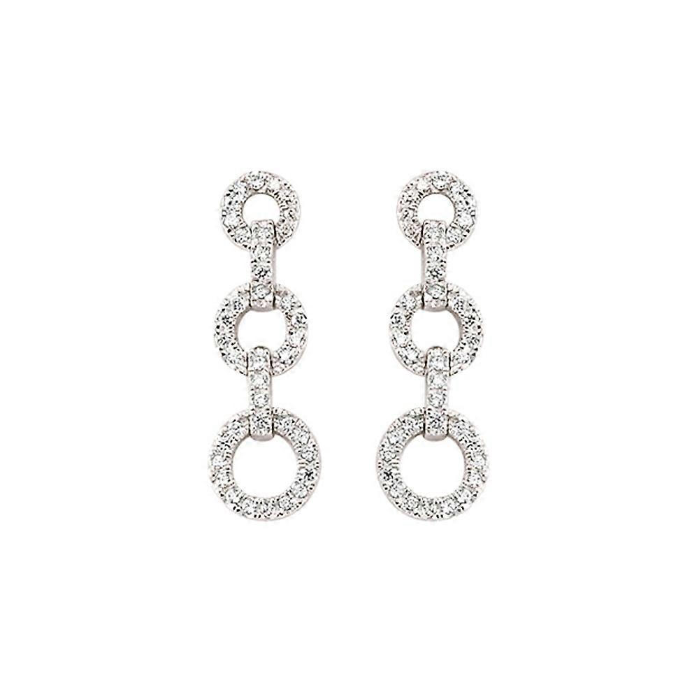 Jewelco London Ladies Sterling Silver Cubic Zirconia Trilogy Chain Drop Stud Earrings