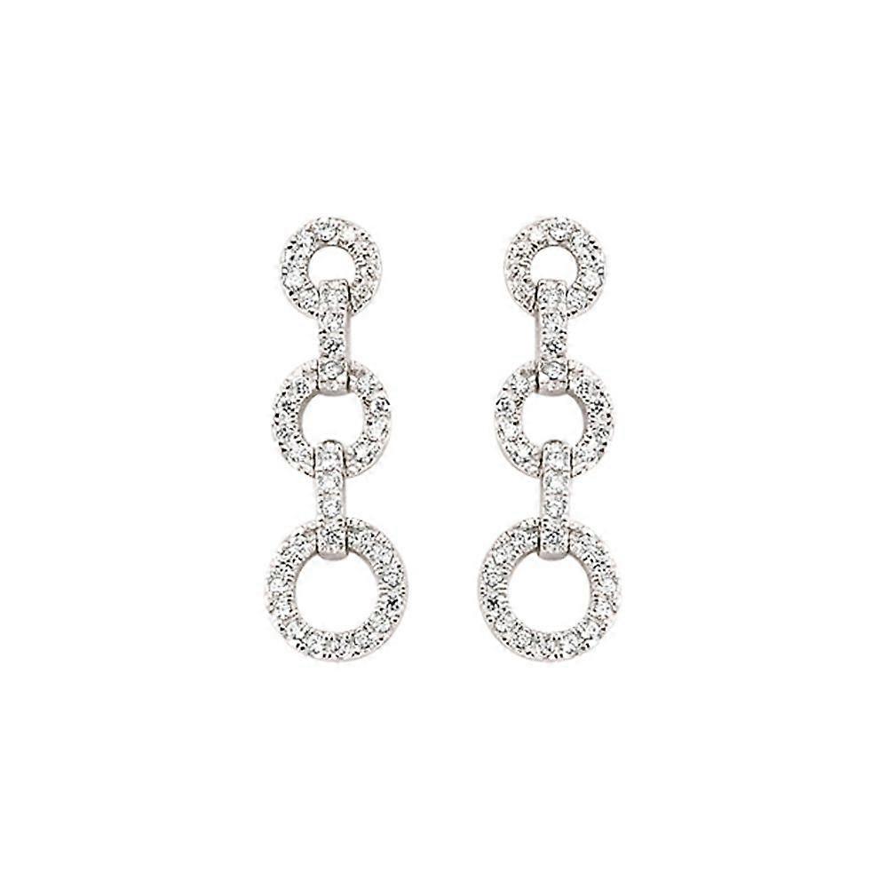 Jewelco London Ladies Sterling Silver Cubic Zirconia Trilogy Chain Drop Stud Earrings