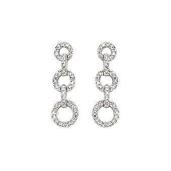 Jewelco London Ladies Sterling Silver Cubic Zirconia Trilogy Chain Drop Stud Earrings