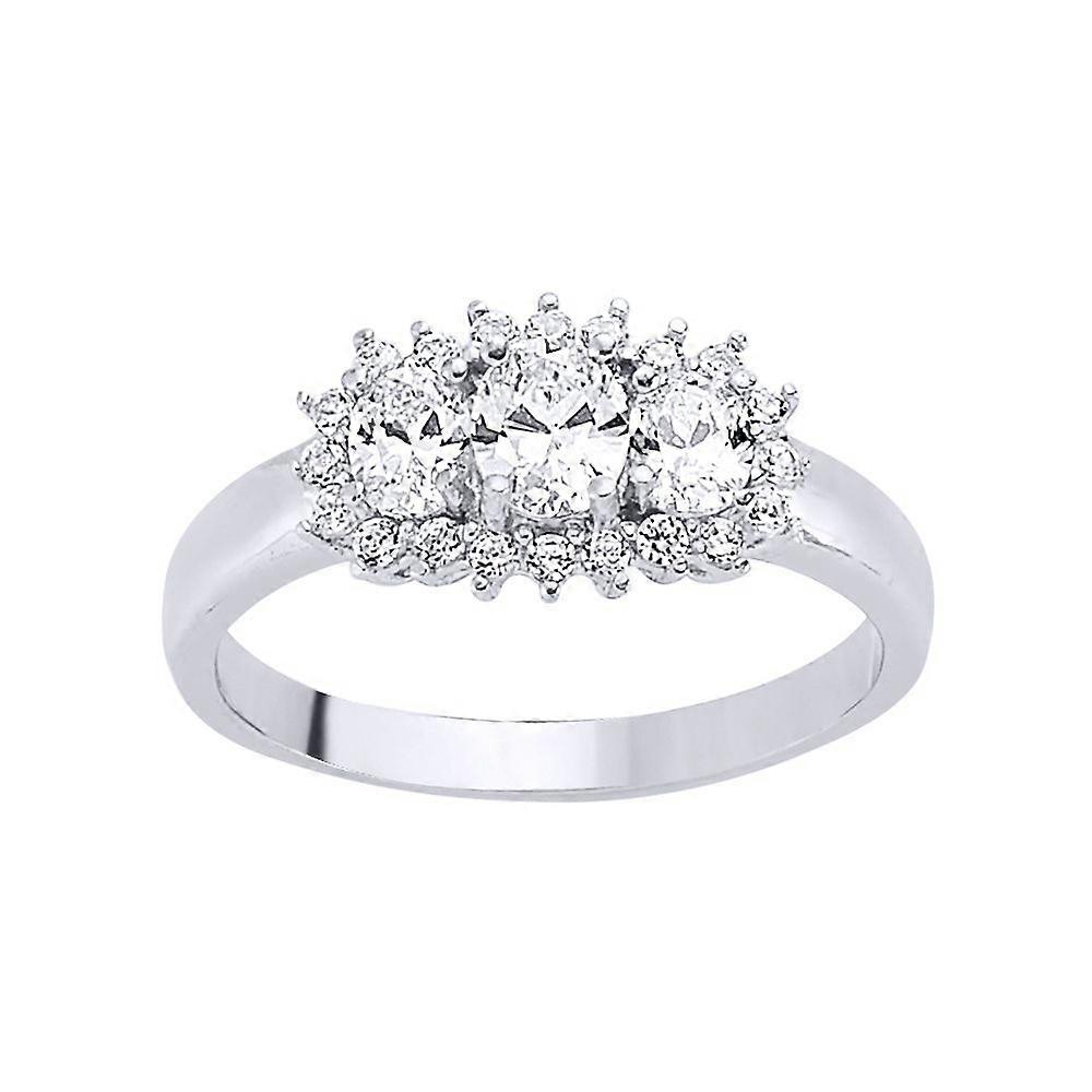 Jewelco London Ladies Sterling Silver Cubic Zirconia Trilogy Cluster Engagement Ring