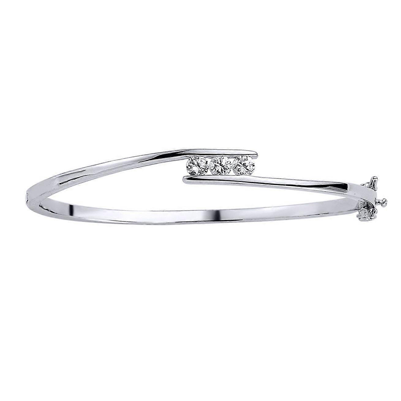 Jewelco London Ladies Sterling Silver Cubic Zirconia Trilogy Crossover Bangle Bracelet