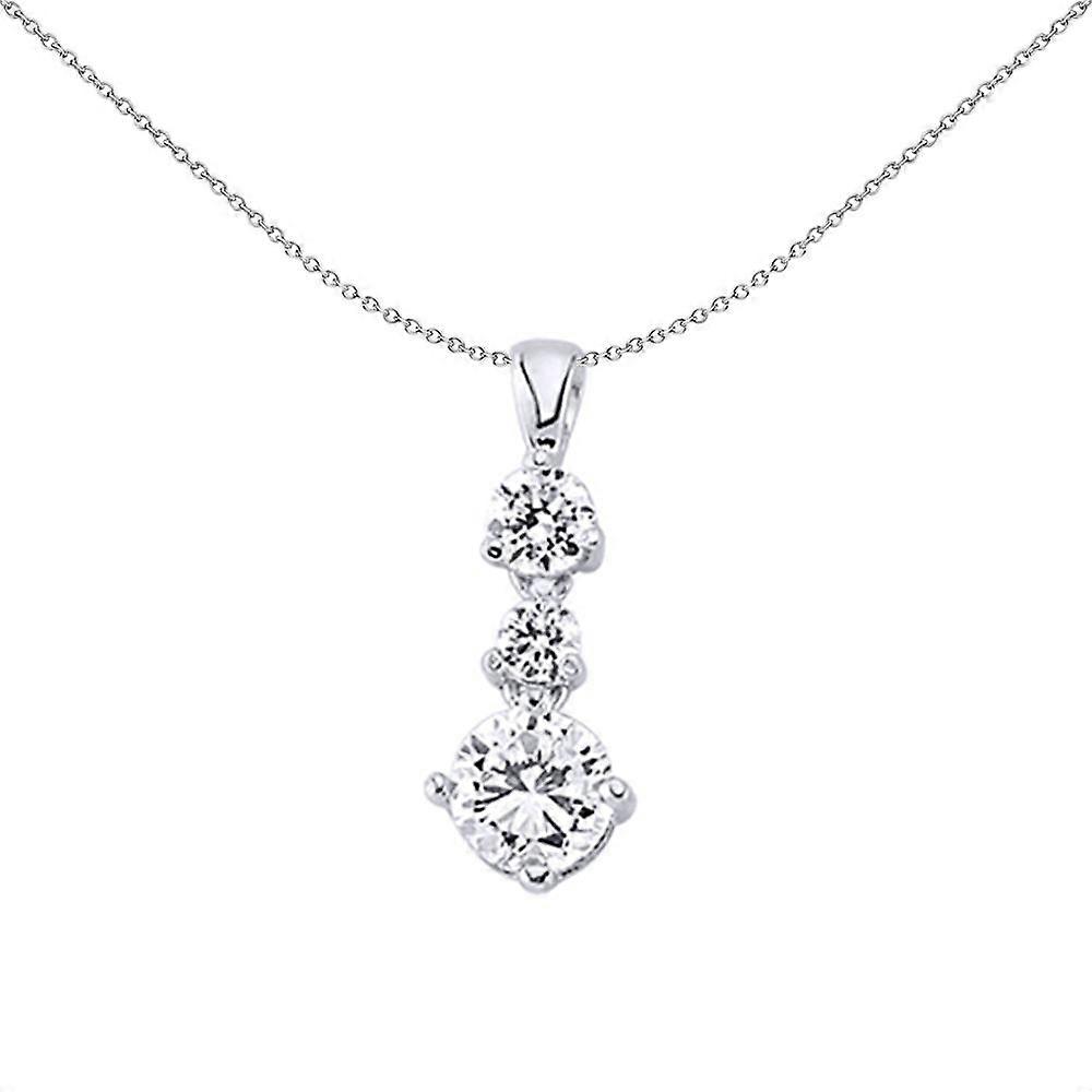 Jewelco London Ladies Sterling Silver Cubic Zirconia Trilogy Drop Charm Necklace 18 inch