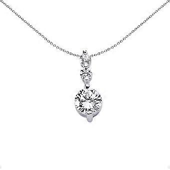 Jewelco London Ladies Sterling Silver Cubic Zirconia Trilogy Drop Pendant Necklace 18 inch