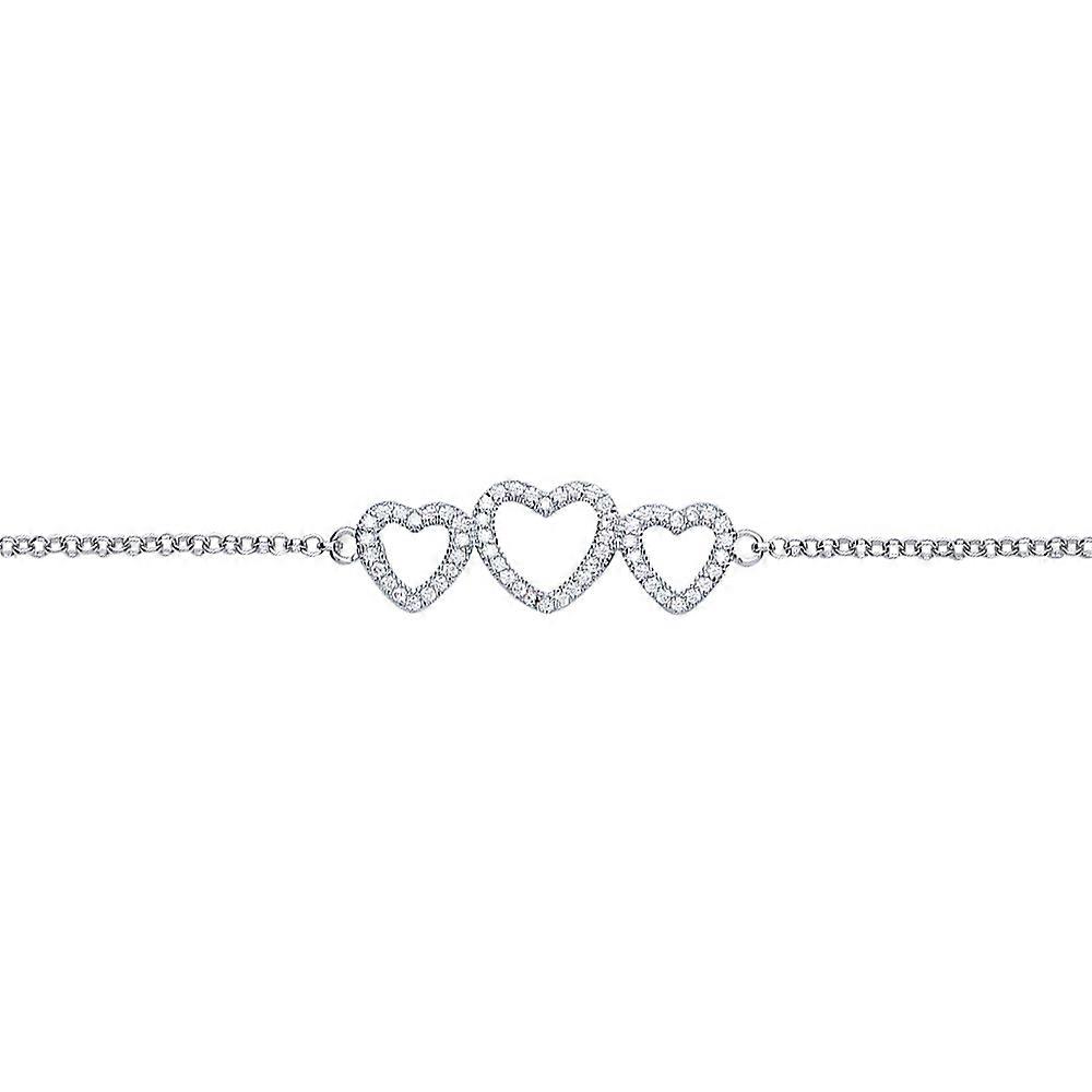 Jewelco London Ladies Sterling Silver Cubic zirconia Trilogy Love Heart Charm Bracelet 10mm 7 inch