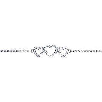 Jewelco London Ladies Sterling Silver Cubic zirconia Trilogy Love Heart Charm Bracelet 10mm 7 inch