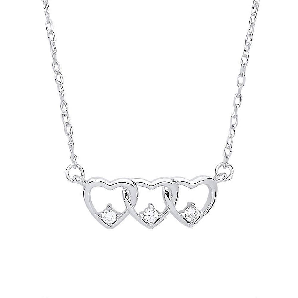 Jewelco London Ladies Sterling Silver Cubic Zirconia Trilogy Love Hearts Charm Necklace