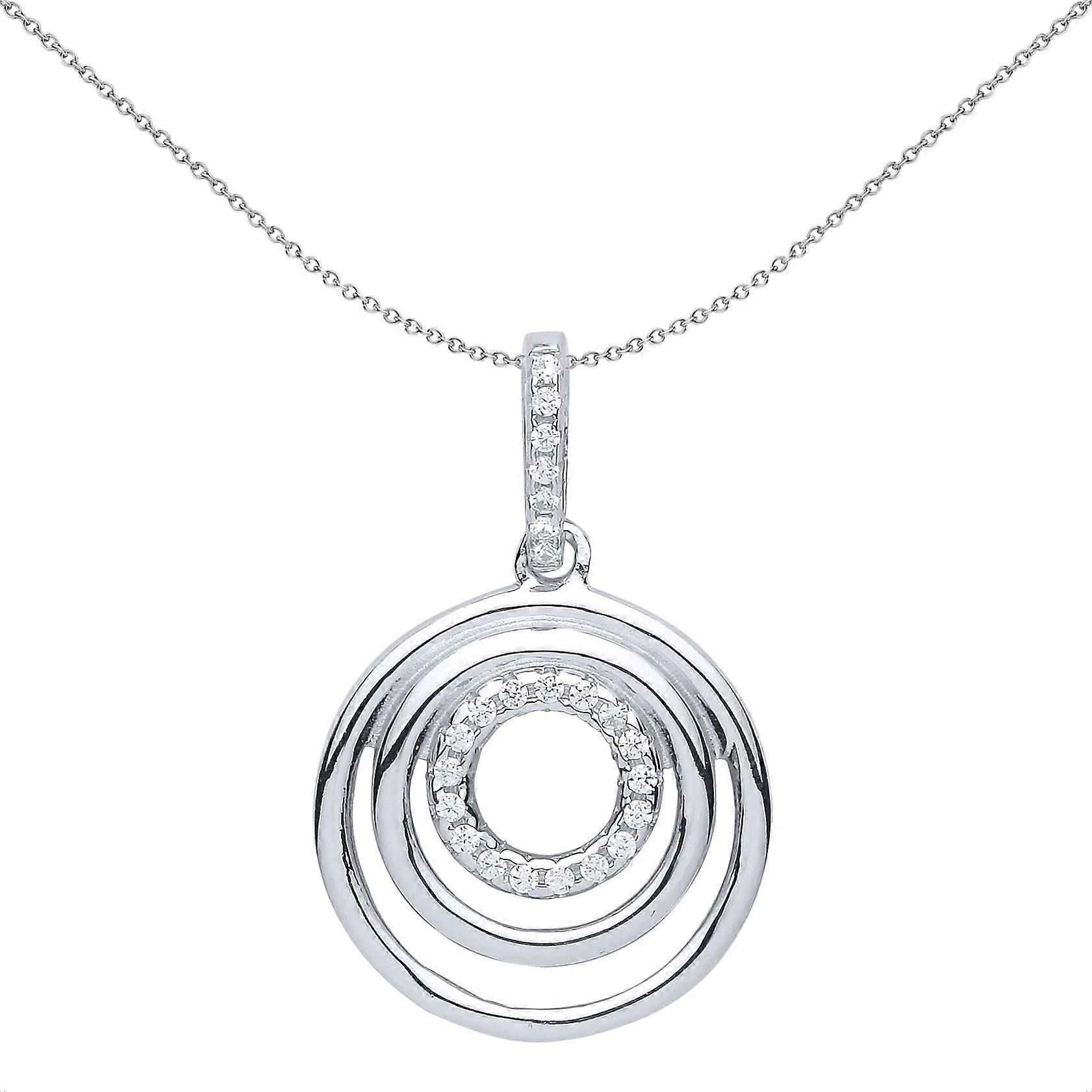 Jewelco London Ladies Sterling Silver Cubic Zirconia Tunnel Rings Halo Pendant Necklace 18 inch